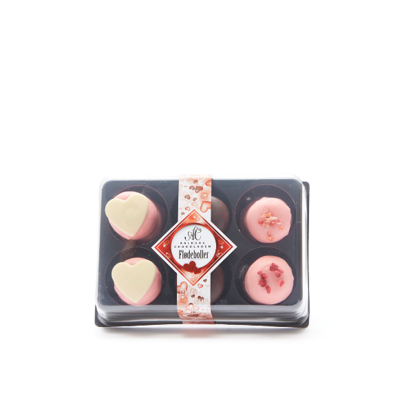 Ingredienser: Sukker, Mandler, Glukosesirup, Kakaosmør, Kakaomasse, Vand, Mælkepulver, Æggehvidepulver, Hindbær pulver, Jordbær, Surhedsregulator (citronsyre, eddikesyre, vinsyre), Stabilisator (E410), Emulgator (sojalecithin), Vaniljestang, Naturlig aroma (vanilje), Farve (E120), Aroma, Jordbærpulver, Kartoffelstivelse, Andre tilsætningsstoffer (E1520), Modificerede stivelse (E1442).