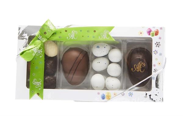 Ingredienser: Sukker, Mandler, Kakaomasse, Kakaosmør, Mælkepulver, Glukosesirup, Hasselnødder, Invert. sukkersirup, Vegetabilsk fedt (palme), Majsmel, Emulgator ( sojalecithin), Naturlig aroma (vanilje), Mælkesukker, Risstivelse, Kakaopulver, Farve (E132, E141, E100, E172, E100, E101), Fortykningsmiddel (Gelatine), Økologisk kokosolie, Stabilisator (E414), Fugtighedsbevarendemiddel (E1103), Fedtfattig kakao, Spirulina ekstrakt.